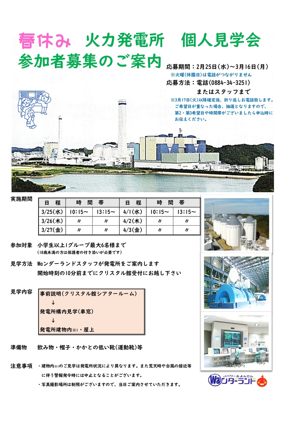 自然や科学を体験できる「Jパワー&よんでんWaンダーランド」は、子どもから大人まで楽しめる体験型公園施設です。館内では発電のしくみや科学の不思議を分かりやすく紹介。屋外には四季を彩る草花や大きな芝生広場があります。